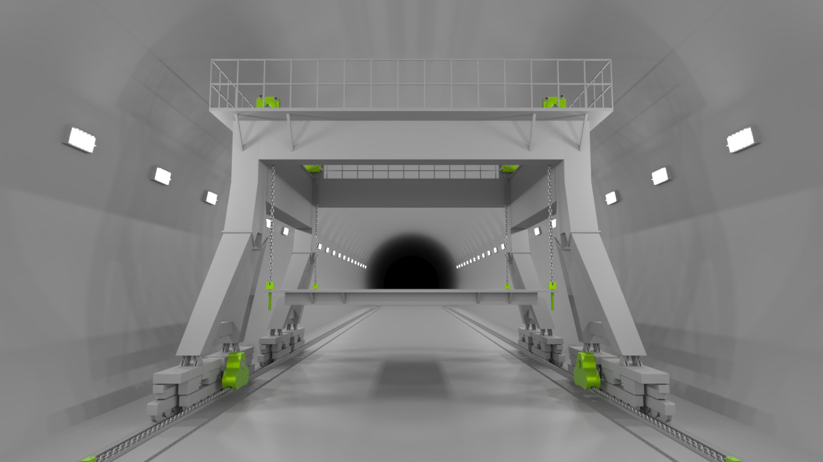 Die zweite Herausforderung ist der relativ beschränkte Platz für die Tunnelbauarbeiten, Die einzelnen Komponenten und das Antriebsgehäuse das RUD Tecdos Antriebssystem sind daher möglichst kompakt gehalten und können direkt am Einsatzort verbaut werden. „Gerade bei Seilantrieben braucht es ja oft eine große Seilwinde mit mehreren Umlenkungen. Das entfällt bei unseren Tecdos Antriebssystemen, da die Kette zum einen auf geringem Raum umgelenkt und zum anderen in einem Kettensack gelagert werden kann, der nur wenig Platz einnimmt“, erklärt Sascha Olfert, Business Development Manager bei RUD.
