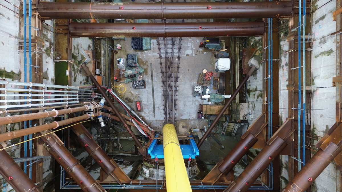 Auch die Arbeiten an den beiden Schächten schreiten voran. In Schleswig-Holstein entsteht derzeit das zweite Untergeschoss, während in Niedersachsen bereits am fünften Untergeschoss gearbeitet wird. Die Spezialtiefbauarbeiten für die Baugrube des Zielschachts sind seit zwei Monaten abgeschlossen; der Ingenieurbau errichtet nun das Schachtbauwerk.