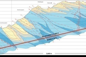 Für das Auffahren des Schrägstollens wird eine TBM mit passender Nachlaufkonstruktion zum Einsatz kommen (Bild 4). Besondere Anforderungen an die Installation ergeben sich aus der Steigung und den Restrisiken Karst. Hohlräume müssen überwindbar sein, das Durchstanzen von am Parament verdeckten Karsten muss beherrscht werden können und die Arbeitsplätze haben sehr hohen Sicherheitsanforderungen zu genügen. Diese Vorgaben werden am zweckmäßigsten mit einem großen Mechanisierungsgrad an den Arbeitsplätzen erfüllt.