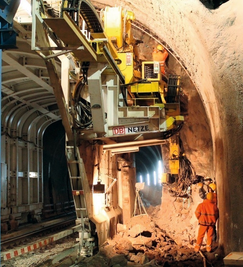 Bei den alten Eisenbahntunneln stehen in beachtlichem Maße auch Teil- und Vollsanierungen an. Diese Maßnahmen erfordern in der Regel ganz besondere organisatorische und logistische Überlegungen, vor allem, wenn sie bei laufendem Bahnbetrieb durchzuführen sind. Beispiele hierzu sind die inzwischen abgeschlossenen Profilaufweitungen beim Jährodter- und Mausemühlen-Tunnel sowie die Erneuerung des Frauenberger und des Kupferheck Tunnels auf der Nahestrecke Bingen – Saarbrücken (Bild 9). Diese Strecke ging im Jahre 1860 in Betrieb. In näherer Zukunft ist die Grundsanierung bzw. Profilerweiterung von insgesamt beachtlichen 20 km Tunnelstrecke geplant. Einzelheiten hierzu sind im Tabellenteil „ZGS“ zusammengestellt. Kennzeichnung und Beschreibung der einzelnen Projekte entsprechen im Einzelnen den künftigen Neubauprojekten aus Tabelle 2.