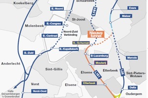 The tunnel under construction is part of the extended Schuman-Josaphat S-Bahn network around Brussels/B. This network is intended to improve the train frequencies and speeds on the rail lines up to 30 km around Brussels without reducing the quality of mainline connections. The following report examines work on the tunnel in closer detail.