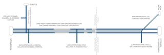 The BBT consists of two 8.1 m wide tunnel tubes, which run single-track at a distance of 40–70 m. The two main tubes are connected by cross passages every 333 m. The total construction costs are estimated at around 10.5 billion euros. The Brenner Base Tunnel is scheduled to go into operation in 2032.