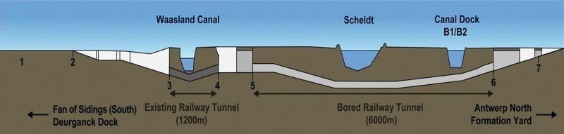 The new rail way line follows for a major part in parallel the alignment of the existing highway R2, including the immersed Scheldt highway tunnel, which was built in the 1980’s. Furthermore, the restricted gradients of the slopes for railway tracks, which are much shallower than for roads, had to be taken into account.