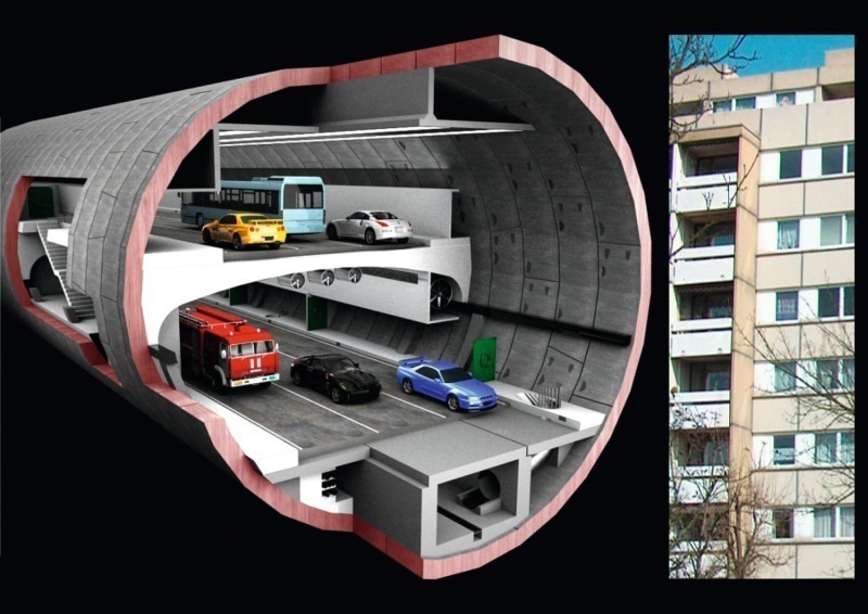 Even in traffic tunnel, the built-in components and traffic loads are not significant for the structural analysis. The multi-level Orlovski-tunnel however, has high traffic loads which are transferred to the segmental lining within small areas (Fig. 6). In the soft soil ground, this may lead to high deformations between the segments and had to be verified in the structural analysis.