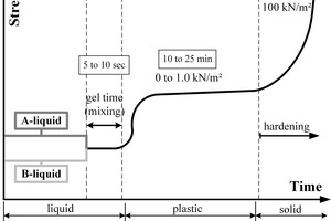 In mechanized tunnelling an early and safe bedding of the last inserted segment rings is a constructive necessity. This can purposefully be achieved by using a two-component mortar as grouting material whose composition is adapted for the geological and structural circumstances. For this purpose, the operating side requires knowledge about possible control parameters based on optimization in terms of material as well as a fundamental understanding of the strength development of a two-component mortar.