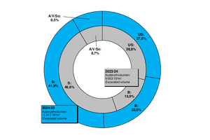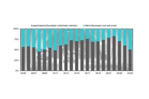 Table 1 provides a picture of the overall tunnelling length under construction at the end of the year in question and the related construction volume. For the turn of the year 2024/25, Figure 1 contains the driven length and the excavated volume in accordance with the type of tunnel utilisation shown in graphic form.