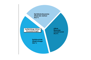 activity in the road transport sector is declining accordingly. Looking at the data on excavated volume, a comparison between transport tunnels on the one hand and supply and disposal tunnels on the other shows a volume ratio of around 11 : 1 with a length-related ratio of 2 : 1 (see Fig. 1).