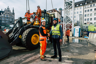 In the heart of Munich's city center, the ARGE Marienhof consortium, consisting of Implenia and Hochtief, is working on behalf of Deutsche Bahn on one of Germany's most ambitious infrastructure projects: the second S-Bahn main line. In one of the deepest excavation pits in the country, now 44 m below street level, a new underground station is being built at the Marienhof. This is also where the Volvo L120 Electric is being deployed as Europe's first fully electric large wheel loader in tough everyday tunnelling operations.